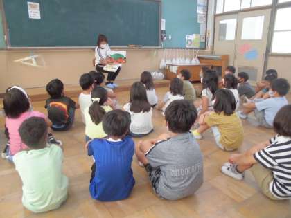 8日(木)の朝に、「ゆめのひきだし」の方が来てくださって、読み語りをしてくださいました。