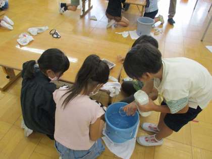 色々な容器に実際に水を入れて比べることで、実感をもって理解することができたようです。今後も可能な範囲で実際に体験しながら学習していければと思っています。