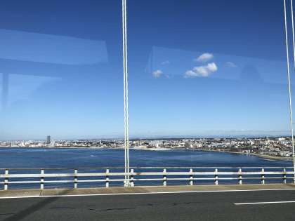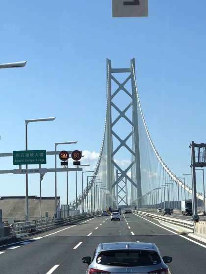 今、明石海峡大橋を渡っています。渡りきると、淡路島。最初の休憩ポイント、淡路SAに到着します。