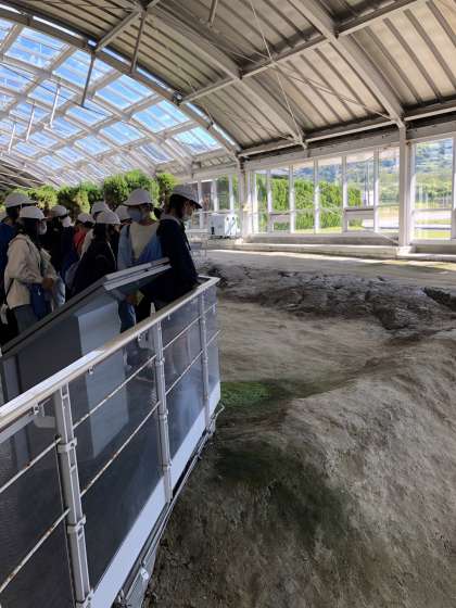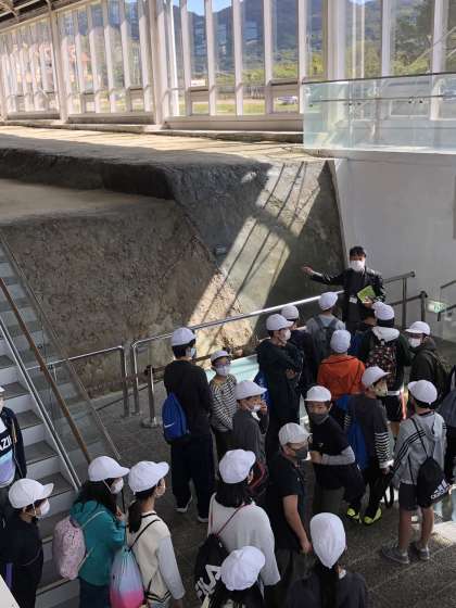 断層保存ゾーンでは、語り部さんの説明を聞きました。