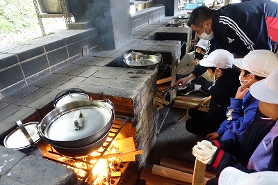 5年生花背山の家宿泊学習 【野外炊事 すきやき風煮】