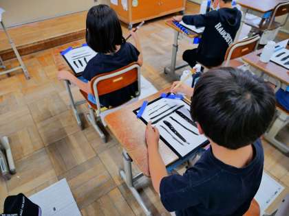 見本で太く書いた時には歓声が上がるほど、楽しんで学習していました。
