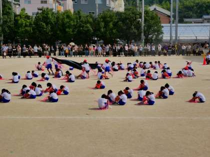 2年生は初めに「ぐねぐねぴょんぴょんぐるっとリレー」をしました。自分たちで考えたコースを全力で駆け抜ける姿は、かっこよかったです。自分のクラスはもちろん、他のクラスの友達の頑張りを応援し合うことができました。