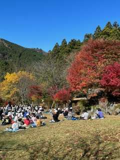 天気が良いので、青空と紅葉の下でお弁当をいただきます。
