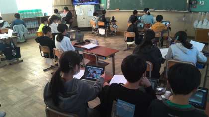 外国語の学習で、上賀茂小学校の6年生と交流しました。