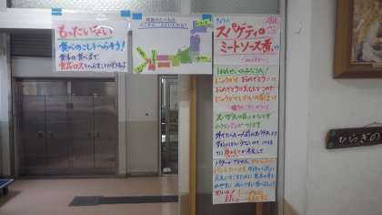 今日のメニューは、「こがたコッペパン、牛乳、スパゲティのミートソースに、ほうれんそうのソテー、牛乳」です。