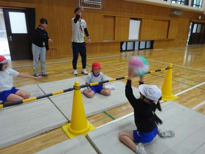 専科の吉川先生の紹介のあとには、新しい曲で体操をしました。