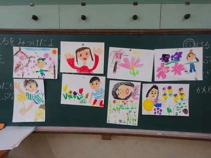 図画工作では、昨日見つけた「春」を絵で表しました。