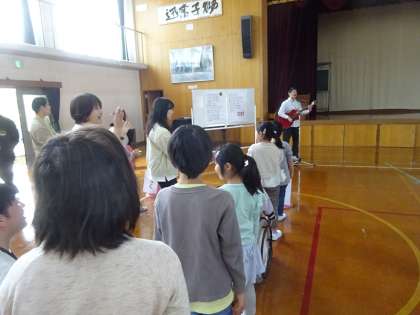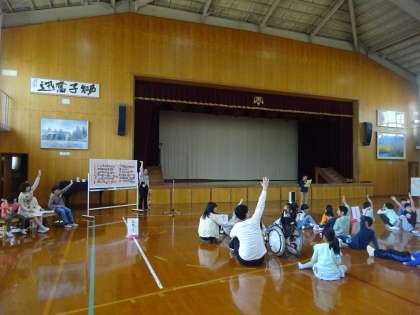 それぞれの学校が出すクイズに答えたり、一緒に歌ったり体操したりして楽しい時間を過ごしました。