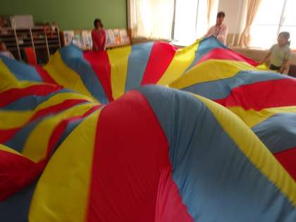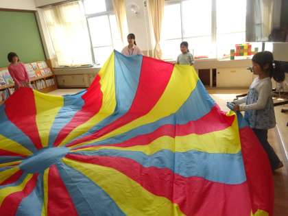 ワイワイ運動会にむけてバルーンの練習をしました。