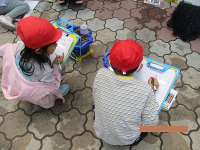 「ハートみたいな形でかわいい。」「なんか、ちょうちょうにも見えてきた。」と、葉っぱの形をよく見て観察することができました。