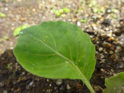 そしてキャベツの葉には、モンシロチョウの卵が!!