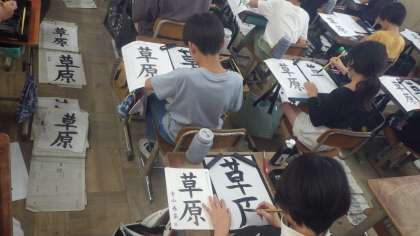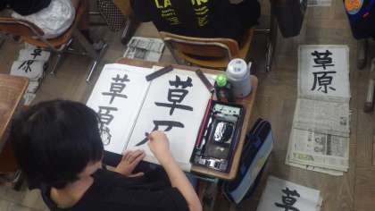 中と外の組み立て方に気を付けて、「草原」という字を書きました。