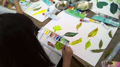 先週はお気に入りの葉を見ながら、いろいろな緑色を作りました。