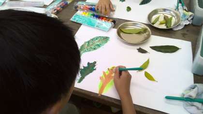 3年生 図画工作「お気に入りの葉」葉をよく見ながら描きました!
