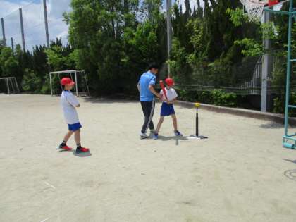 体育では、ベースボールゲームに向けて、キャッチボールをしたり、バッティングをしたりしました。