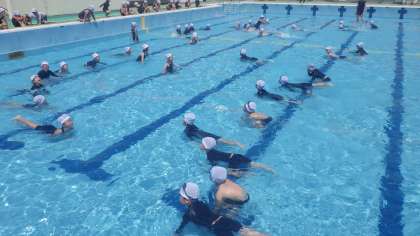 安全に気を付けて、大きなプールで楽しく遊びましょう!