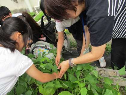 大きな豆に育っていたので、みんなでプチッと引っ張って収穫しました。
