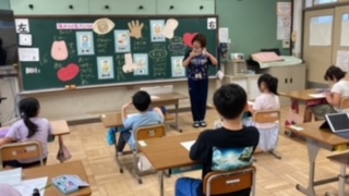 学級活動では、栄養の先生に来ていただいて、授業をしてもらいました。