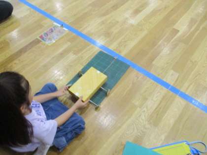 「より太いゴムでいっぱい引くと遠くまで動く」と教えてくれました。