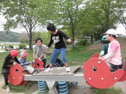 みんなでシーソーやすべりだい、ブランコなどで遊びました。みんな