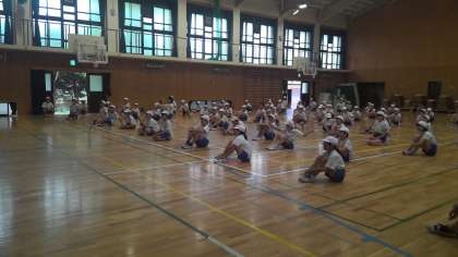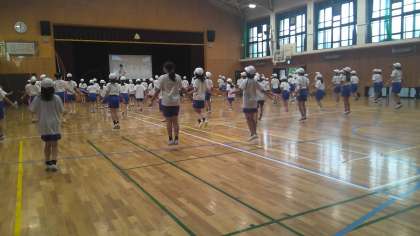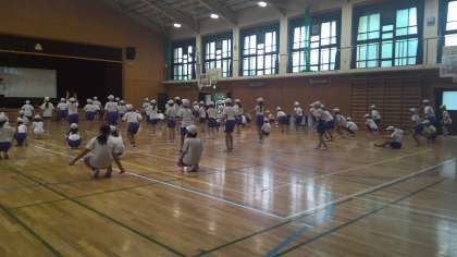 みんなで合わせて跳んだり、自分のできる技でチャレンジして跳んだりします。さらなにレベルアップしてほしいと思います。