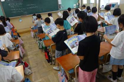 子どもたちは実際には聞いたことがない様子でしたので、ギガ端末を使い、虫の声を聴きました。