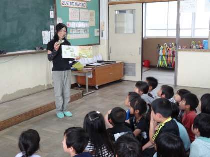 おはなしは「そらまめくんのベッド」です。お母さんのすてきな語りに、お話を熱心に聞いていました。
