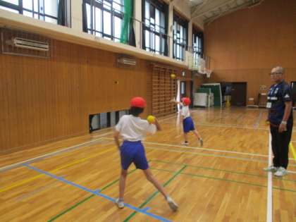 1学期の終わりに少しベースボールをしたので、投げ方や打ち方などを思い出しながら練習をしました。