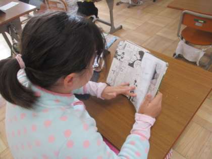 物語の本を借りた人は、「はじめ」「中」「終わり」に内容を分けて書きます。
