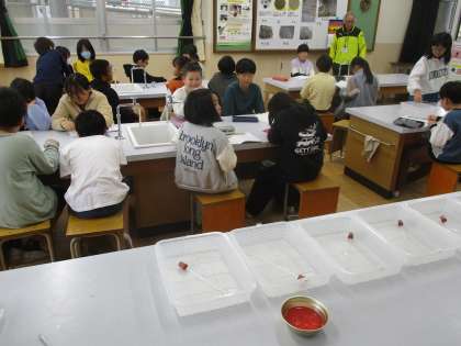 子ども達は初めて使う理科室に興味津々で、一生懸命実験に取り組んでいます。