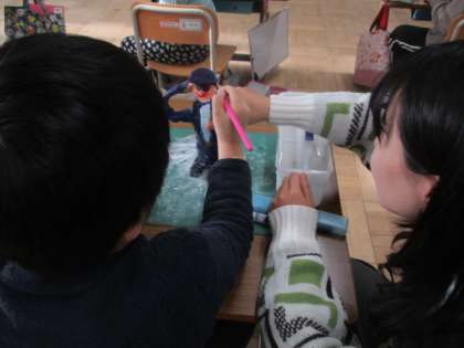 今日の図工では、髪の毛を絵の具でかいたり、毛糸を貼り付けたりしました。