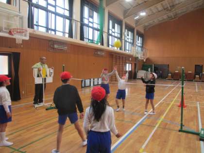 後半は、2グループに分かれて対戦をしました。ボールが落ちてしまわないように、キャッチしたり打ち返したりして、ラリーを楽しみました。