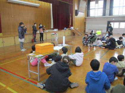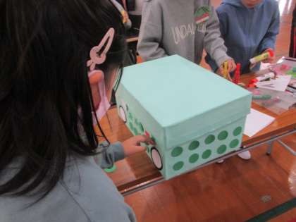 大宮小学校の体育館で、北上支部のお友だちと一緒に作品をつくりました。