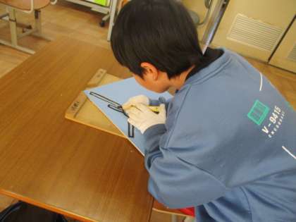 図工で彫刻刀を使って版画に取り組んでいます。