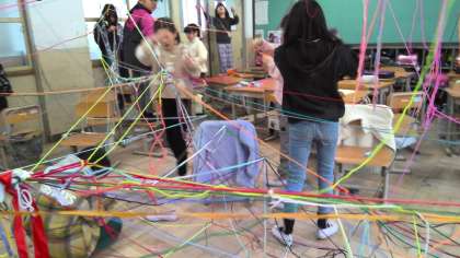 教室がカラフルな「ひもひもワールド」に変身しました!