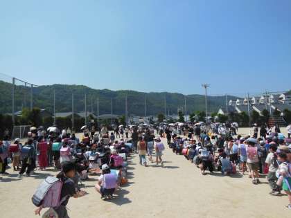 まずは教室で1次避難の訓練を行い、そのあと校庭で引き渡しをしました。