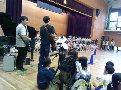 先生たちの生演奏に合わせて、児童会の歌を全校児童で歌いました!!