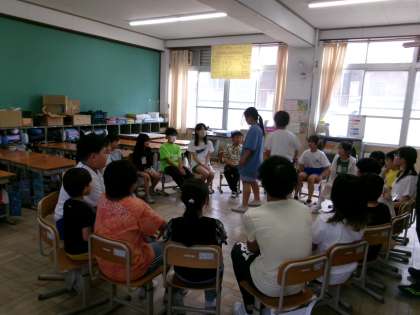 教室ではいす取りゲームやなんでもバスケットなど、中庭や運動場では鬼ごっこやリレーなどをして遊んでいました。どのグループも6年生がリーダーとしてグループをまとめていました。学年関係なく、みんなで楽しく遊ぶことができました。