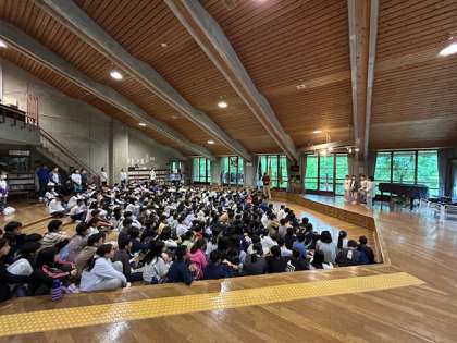 山の家の人の話や、各学校紹介を静かに聞くことができていました。
