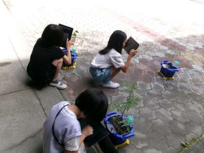 観察しながら、葉っぱの枚数や花の数などを調べていました。