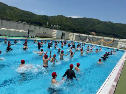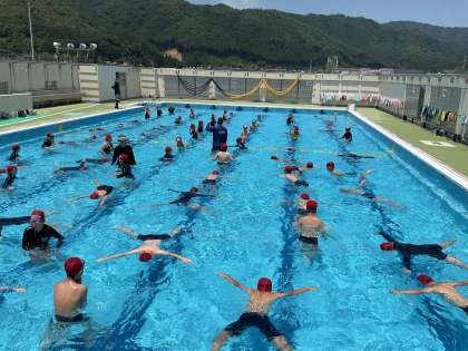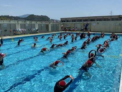 初回なので気を付けることや体操の確認と水慣れをしました。楽しそうな声がたくさん聞こえていました。