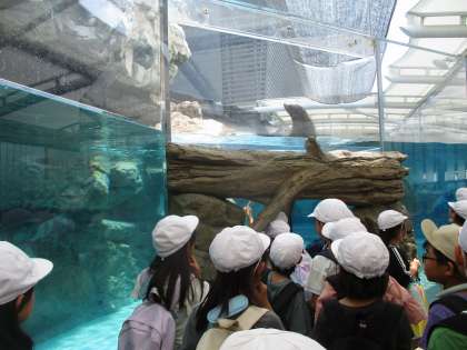 「こんなクラゲもいるんだ!」「アシカって目を瞑って泳ぐんだ!」「オオサンショウウオってこんなに大きいんだ!」と子どもたちは目を輝かせていました。