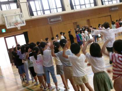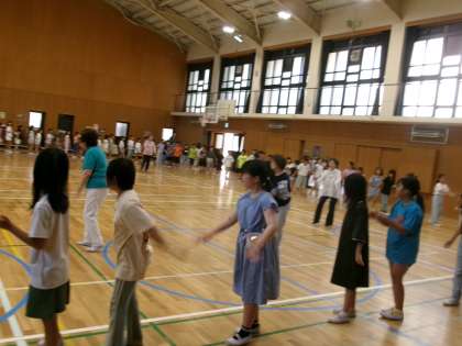 今日は、3年生と4年生が江州音頭を教えていただきました。「1・2・3・4…」と女性会の方が拍子をとるのに合わせ、途中で掛け声をかけながら楽しそうに踊っていました。次回は水曜日、高学年です。