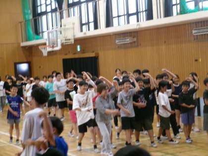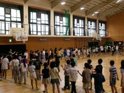 たくさんの高学年の子どもたちが参加していました。6年生は小学校最後の江州音頭です。女性会の方に呼ばれて、円の中で一緒に踊っている子たちもいました。みんなで踊ると楽しいですね。5・6年生の先生方も一緒に踊っていました。女性会の皆様、ありがとうございました。