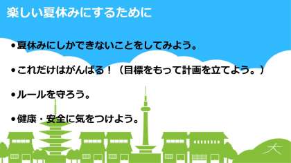 健康・安全に気を付けて充実した夏休みをお過ごしください。