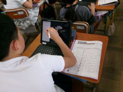 さっそくiPadとスタイラスペンを使って、ロイロノートにふり返りを書き込んでいました。