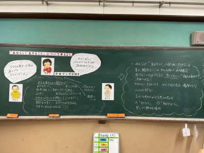 人権にかかわる学習(ジェンダーフリー教育)の一環として、「自分らしく生きる」をテーマに校内研究授業を行いました。子どもたちは、「男やから女やからとか決めつけない」「誰もが安心できる環境を作る」と、これから自分達ができることを考えていました。友達の意見を聞いて、考えが深まる場面も見られ、とても有意義な学習になりました。