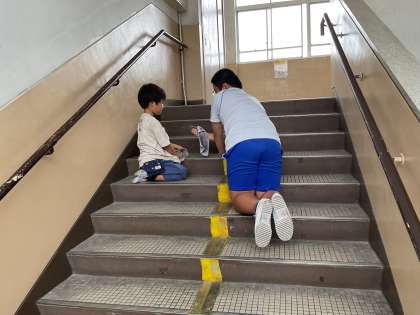 なかよしグループで協力することとや無言清掃を大きなめあてとしています。余計なおしゃべりをせず、掃除用具を正しく使って掃除をすると、先生からシールがもらえます。ペアで協力して掃除をしている姿が、学校中で見られました。