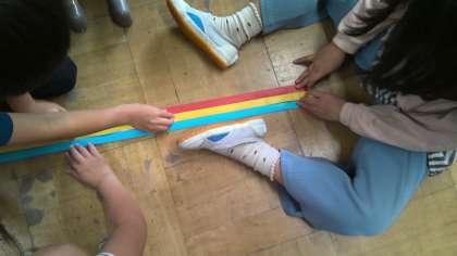 今日はテープに長さや高さを写し取って比べる活動に取り組みました。